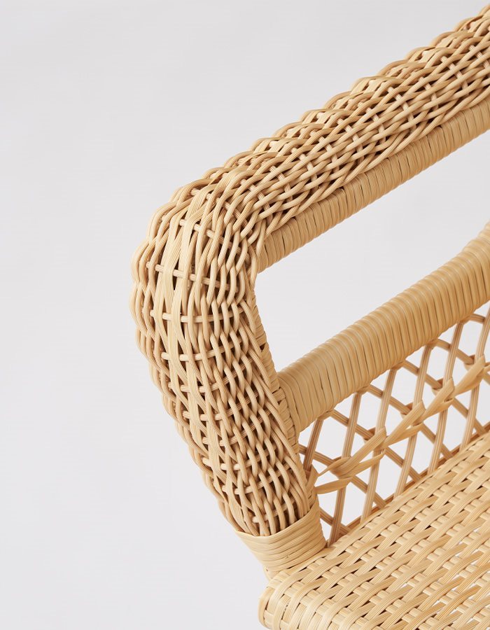 ShareDining chair with powder-coated aluminum structure. Polypeel and Polucore weave is available in the finishes shown in the outdoor color card
