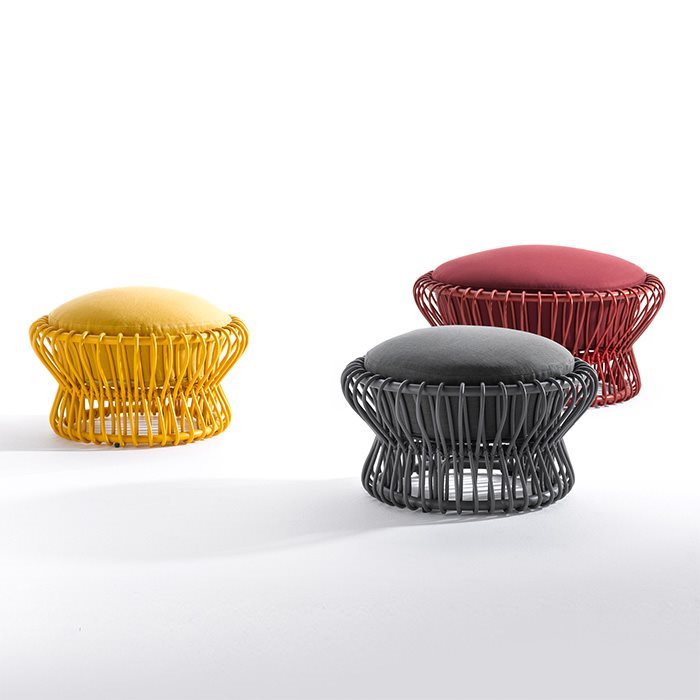 Orbita e Taiko richiamano una visione leggera e leggiadra grazie alla trasparenza consentita dal lavoro eseguito manualmente nell’intreccio del materiale.